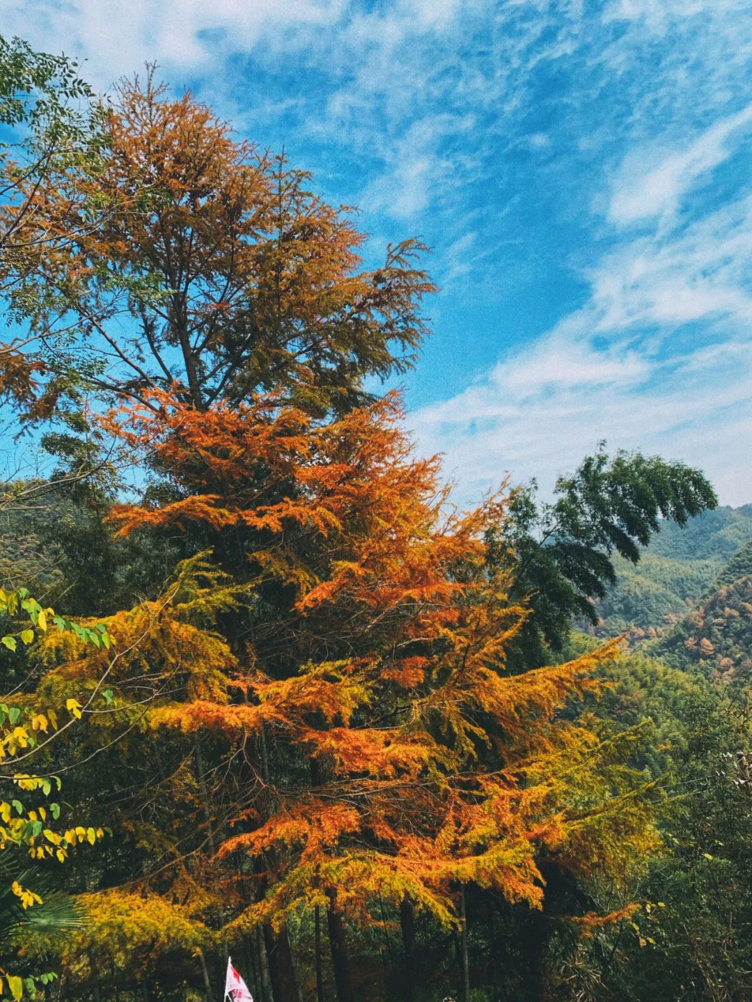 賞秋活動第三站-四明湖紅衫林,位于余姚千年文化古鎮(zhèn)梁弄、四明山第九洞天境內(nèi)。此處紅衫林被譽為"浙江最美紅衫林,一年四季都不缺好風(fēng)景?,F(xiàn)在也正是賞銀杏、楓葉、水杉的好時節(jié)。大家欣賞著美景,拍照留念,其樂融融。